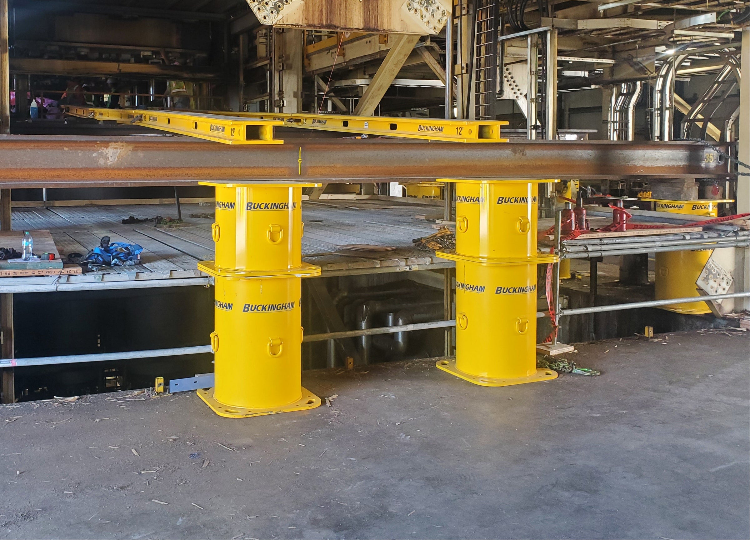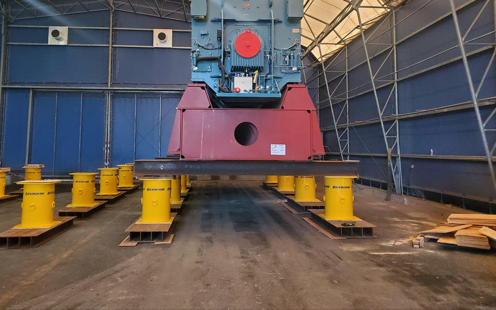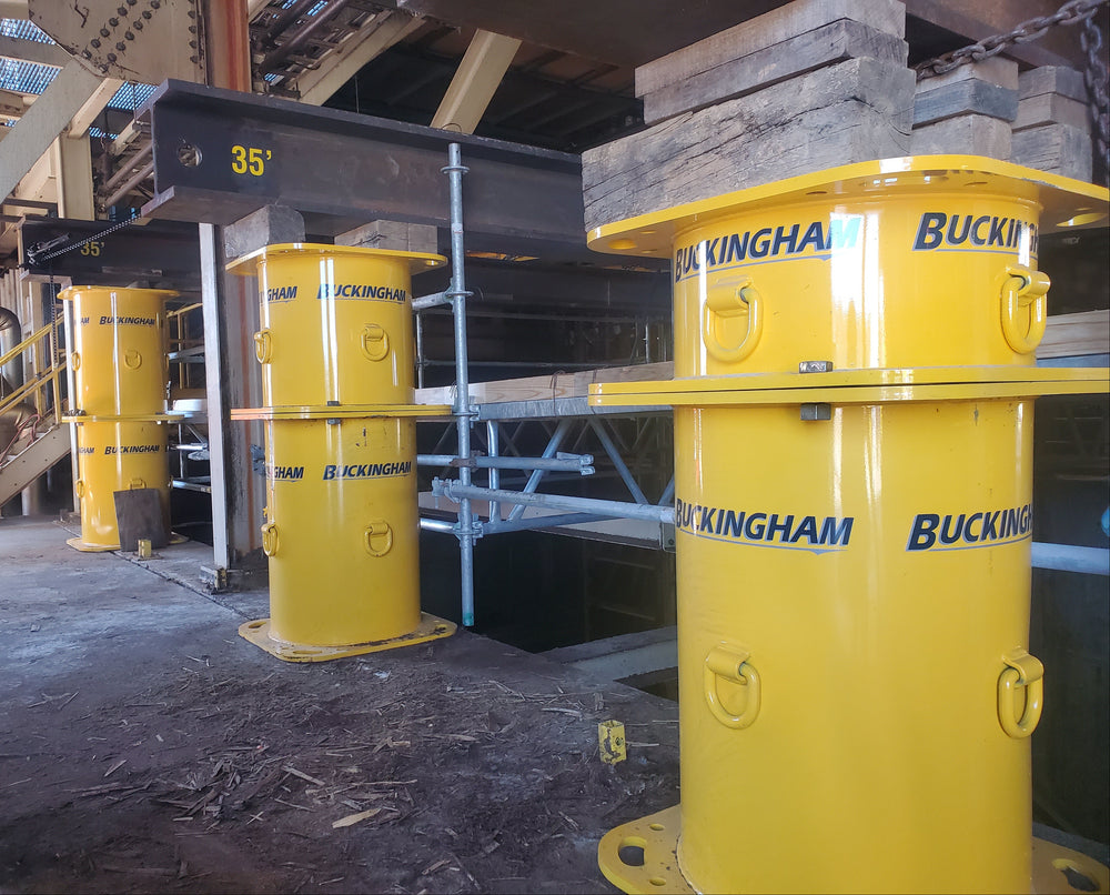 Buckingham Setup Stands are built for structural movers and heavy-load professionals who need reliable support under serious weight. Designed to provide a stable, repeatable setup solution, these stands are available in 12", 24", 36", and 48" heights, with each standard model rated at 120 tons. Buckingham also offers a heavier-duty 150 Ton Setup Stand rated at 300,000 lbs. Customization is available for specific job requirements, and standard units are finished in BSME Yellow, with custom colors available. Depending on the model, unit weights range from 435 lbs. to 720 lbs. for the 120-ton versions, while the 150-ton model weighs 2,040 lbs.